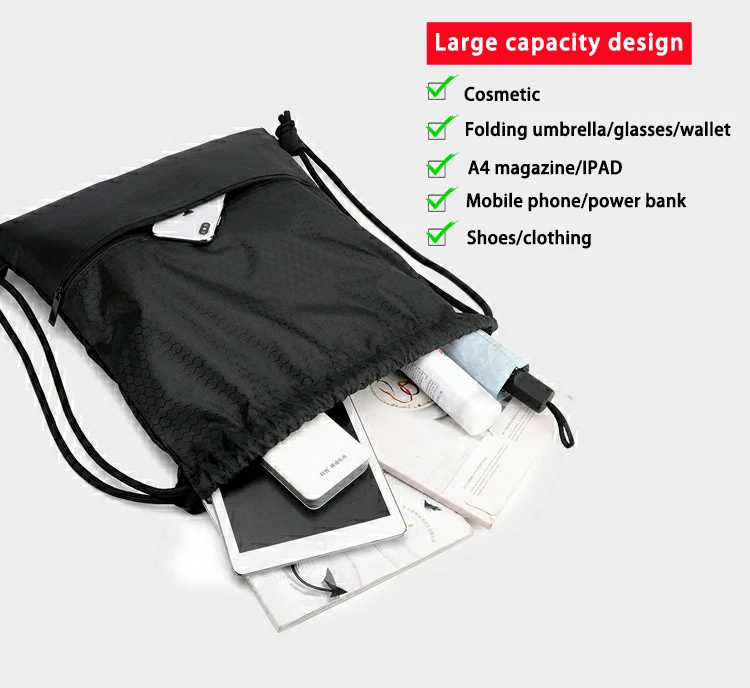 Materyèl: NylonCapacity: 12-30LType: SoftbackUse: Kan&HikingProduct Non: Polyester drawstring bagSize: Requirments KliyanUsage: Anbalaj